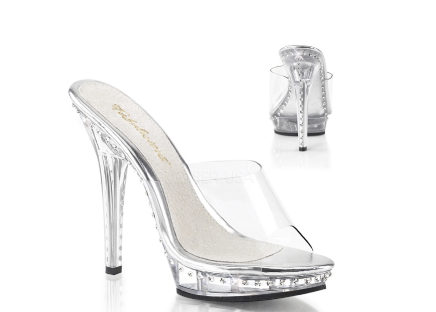 5″ Heel with 3/4” Platform featuring one line of Rhinestones on the Heel and Platform Bottom